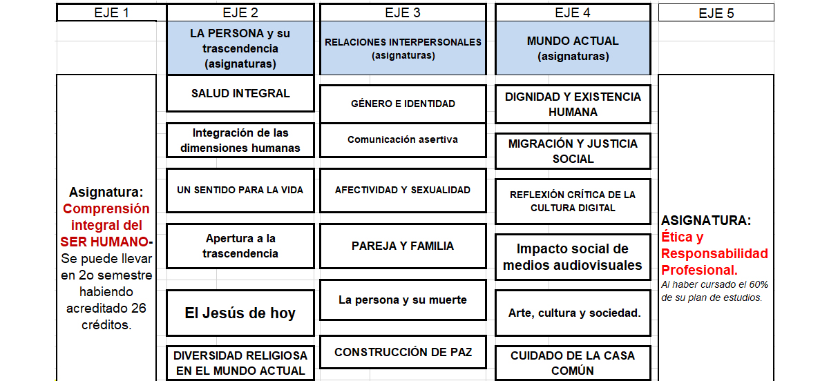 Esta reflexión se cristaliza en el Área de Reflexión Universitaria que tiene por objetivo: ser un “espacio curricular dedicado al planteamiento de los tópicos fundamentales acerca del ser humano y la reflexión sobre la dimensión trascendente de la vida, mediante asignaturas, talleres y actividades de aprendizaje”.