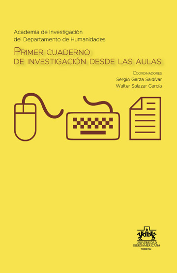 Este Primer cuaderno de investigación desde las aulas pretende dar una muestra de esas experiencias de aprendizaje que nuestros alumnos y alumnas llevan a cabo como parte de la formación profesional que reciben en la Universidad Iberoamericana Torreón. Se trata también de reconocer esa labor que de forma intensiva logran concretar a lo largo de un semestre. Colaboraron en este libro Salma Paulina Hernández Herrera, Juan Carlos Salazar Félix, Adriana González Morales, Andrea Michel Valles Morales, Mariana Velázquez Horta, Anelisse Von Bertrab Madero, Leonardo Esquivel Orozco.
