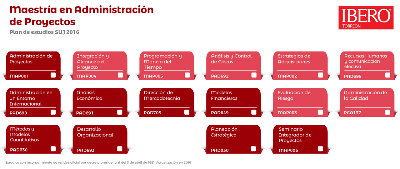 Asignaturas obligatorias de la Maestría en Administración de Proyectos 16
