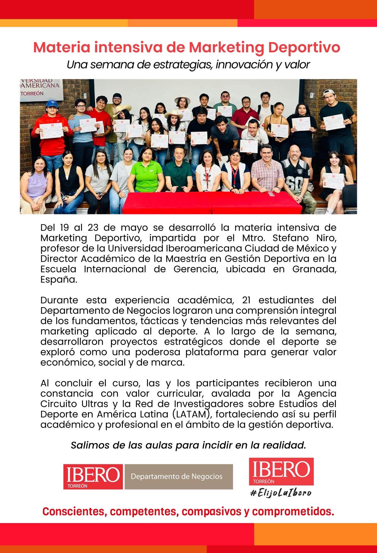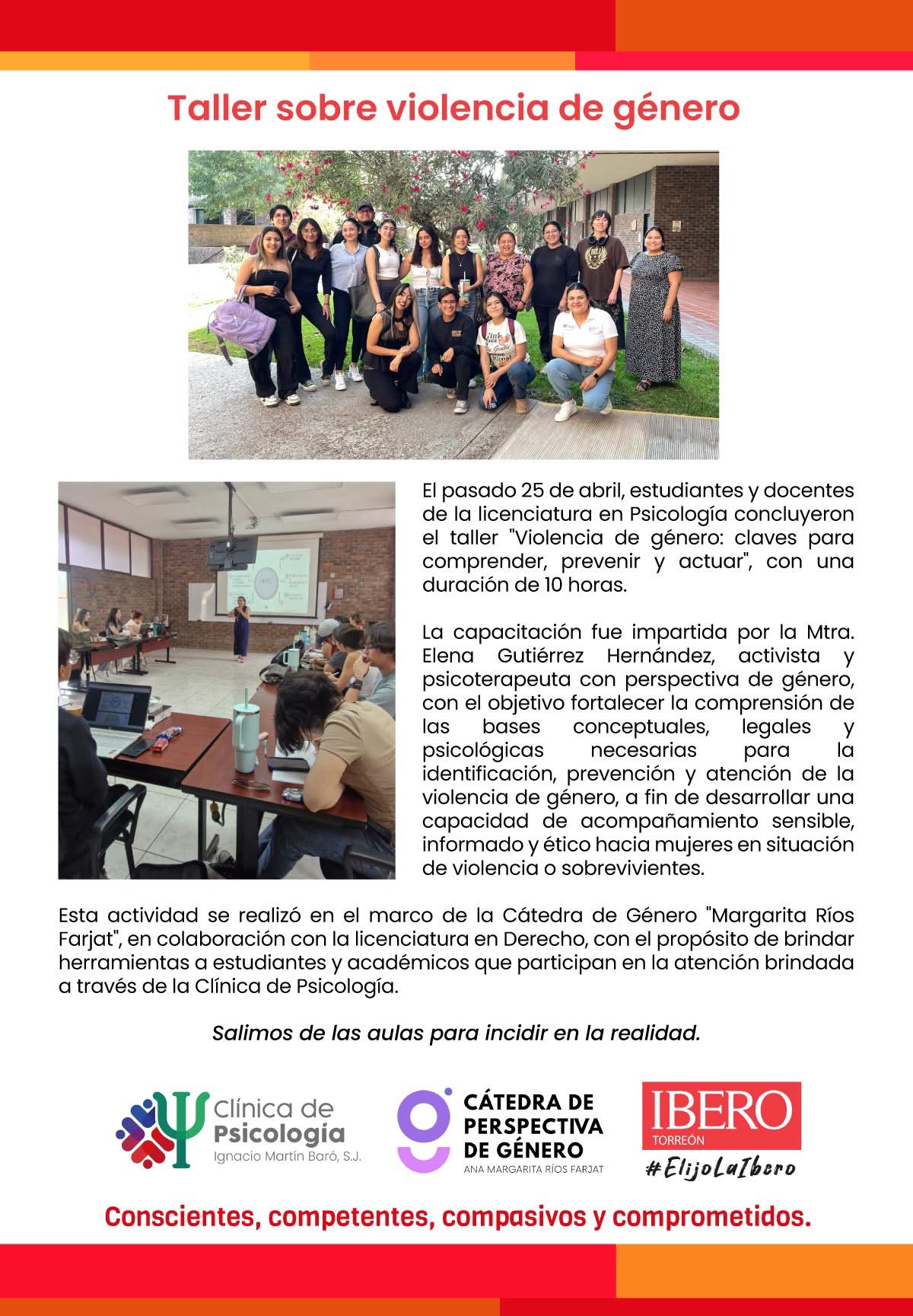 A continuación, algunas evidencias de tantas que se generan constantemente en la academia, cada programa teniendo siempre en consideración, la perspectiva de lograr la incidencia de los alumnos en diversas áreas de la comunidad, sin olvidar una de las frases que marcan el quehacer docente: “formar hombres y mujeres para y por los demás”