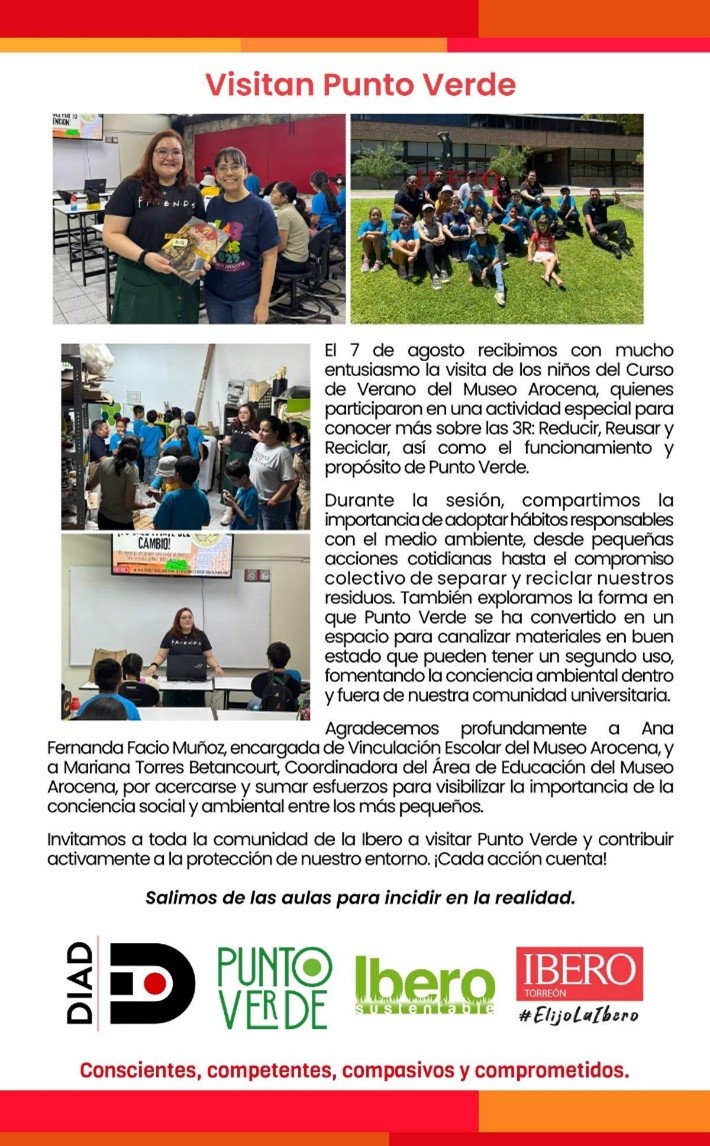 En la Ibero Torreón impulsamos la reflexión y la acción a través de campañas informativas que buscan sensibilizar a la comunidad universitaria sobre la importancia de la sostenibilidad. Estas iniciativas, presentadas en formato de videos y materiales gráficos, tienen como propósito inspirar pequeños cambios que, en conjunto, generan un impacto positivo dentro y fuera del campus.