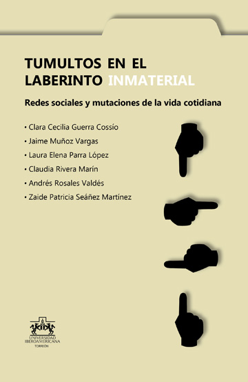 Tumultos en el laberinto inmaterial. Redes sociales y mutaciones de la vida cotidiana reúne seis ensayos sobre la gravitación de las redes sociales en igual número de campos del mundo actual. Los autores examinan la recepción y el uso que las nuevas tecnologías de la información han marcado en el flujo de datos, la vigilancia, el mercado, los comportamientos autodestructivos, la vida laboral y el manejo de la violencia digital, entre otros. Se trata pues de un planteamiento plural en el que surgen más preguntas que respuestas, todas encaminadas a vislumbrar los desafíos del futuro inmediato dada la integración visceral de las nuevas herramientas digitales en todos los espacios de la vida cotidiana.
