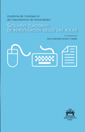 Este Segundo cuaderno de investigación desde las aulas pretende dar una muestra de esas experiencias de aprendizaje que nuestros alumnos y alumnas llevan a cabo como parte de la formación profesional que reciben en la Universidad Iberoamericana Torreón. Se trata también de reconocer esa labor que de forma intensiva logran concretar a lo largo de un semestre. Colaboraron en este libro Mariana Rodríguez Romo Jasso, Daniela Luévano Fuerte, María Elisa Pámanes Hernández, María Bárbara Garza Cepeda, Julieta Rodríguez Esquivel, Ana Lucía Contreras García, Emiliano Franco García, María Fernanda Silvera Jaimes y Mónica Iliana Cuerda del Moral.