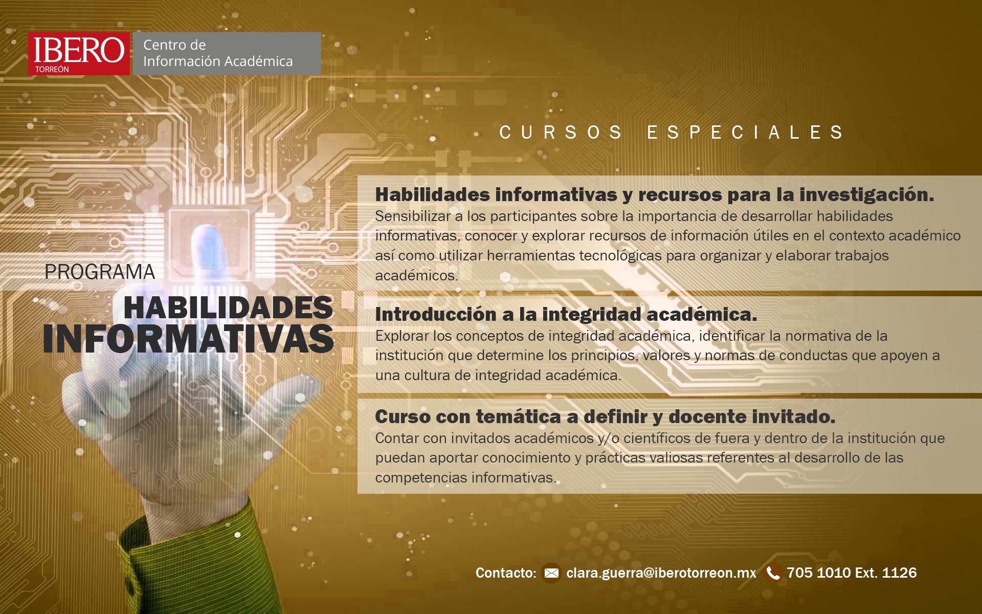El Programa de Desarrollo de Habilidades Informativas (DHI) tiene como objetivo proporcionar a la comunidad universitaria formación y capacitación en la búsqueda de información en los diferentes recursos que ofrece, a través de cursos y talleres que facilitan el desarrollo de competencias informativas y que les permitan ser autosuficientes en la búsqueda, selección y aprovechamiento de la información, así como brindar apoyo a sus actividades académicas y su vida profesional.